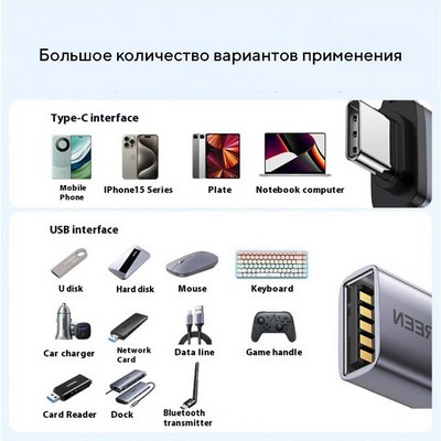 - Для подключения USB приемников в порт Type-C (для беспроводных мышек, клавиатур и т.д.)