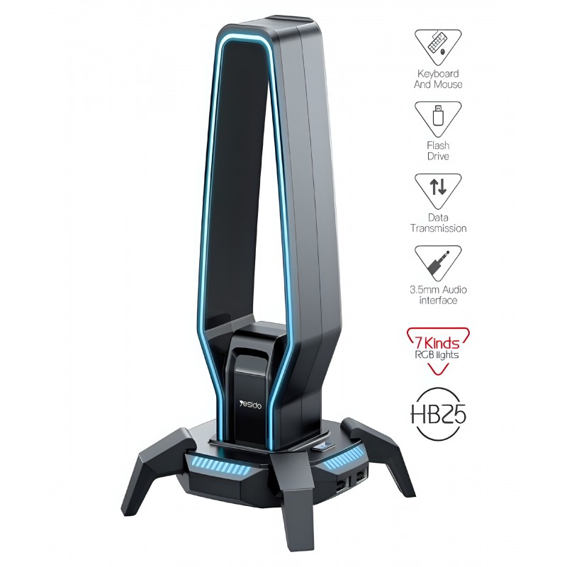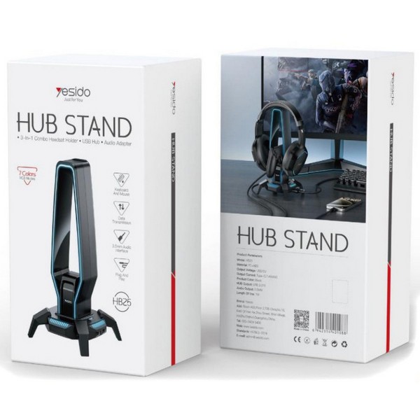 Разветвитель ЮСБ (USB-Hub) в виде подставки для наушников с подсветкой Yesdio HB25