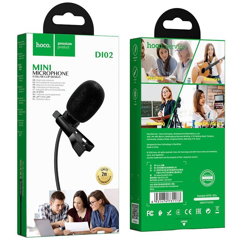 Микрофон Hoco DI02 jack 3.5 мм на клипсе 2 м. цвет: черный