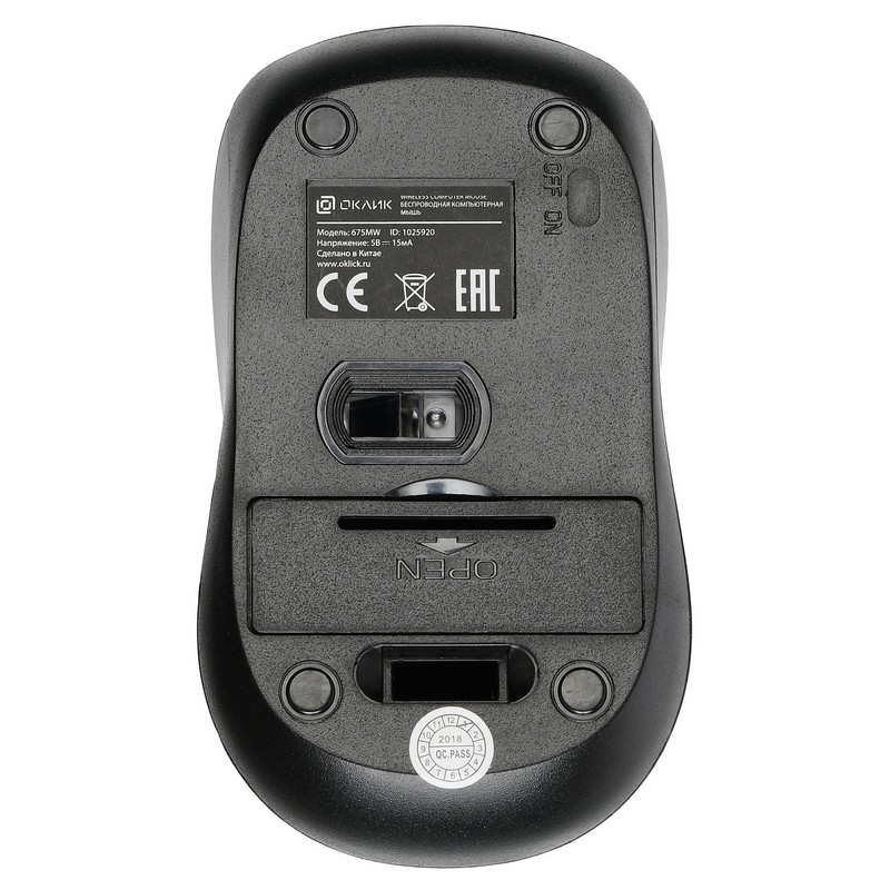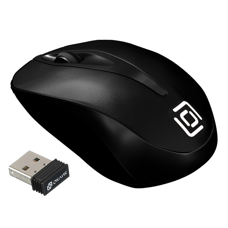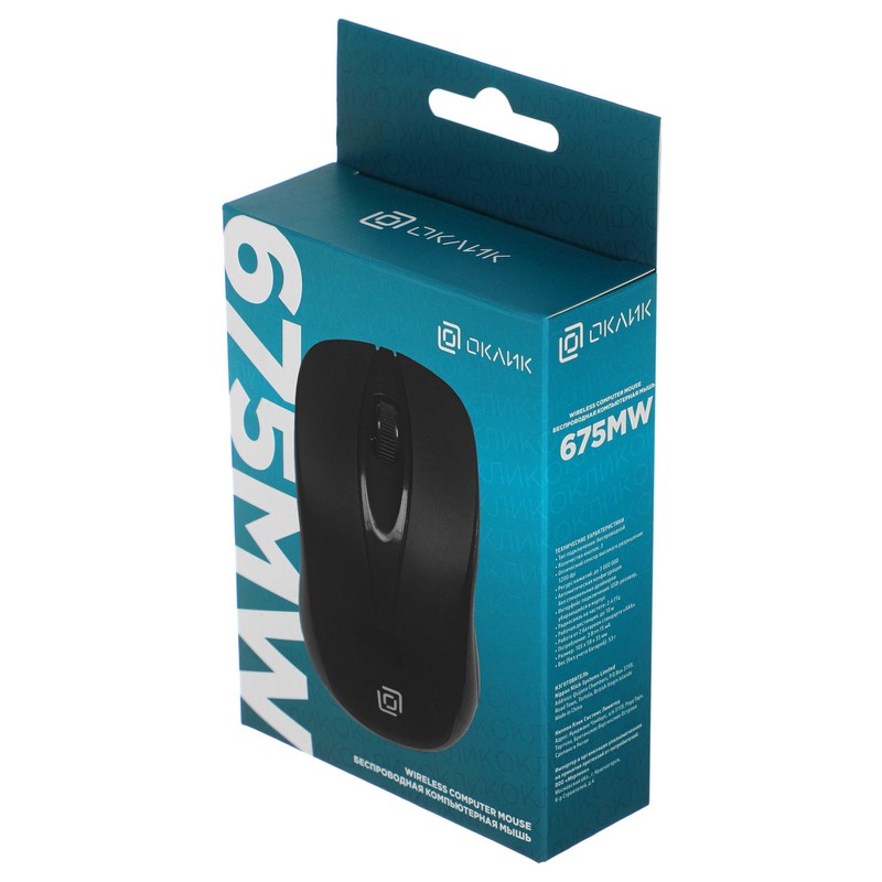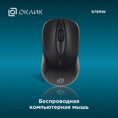 Беспроводная (2.4 GHz) компьютерная мышь от бренда Оклик. Модель 675MW, цвет черный.