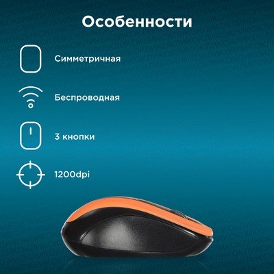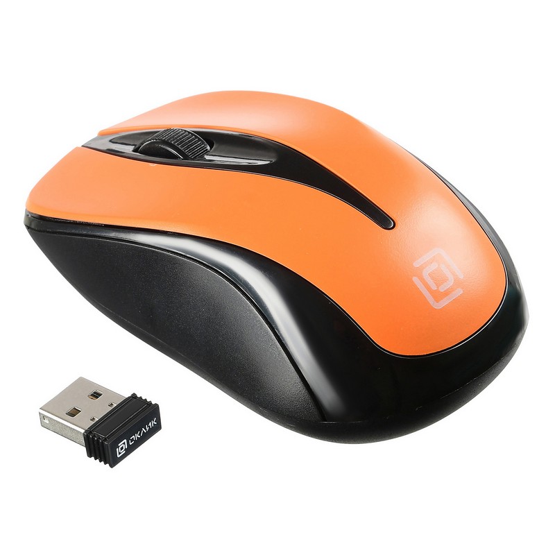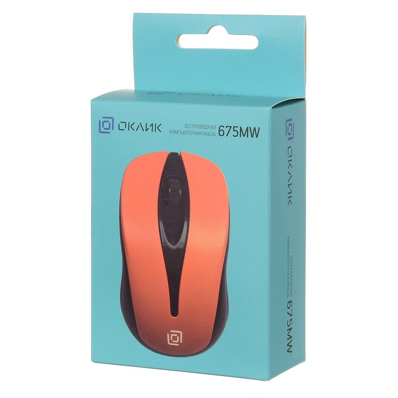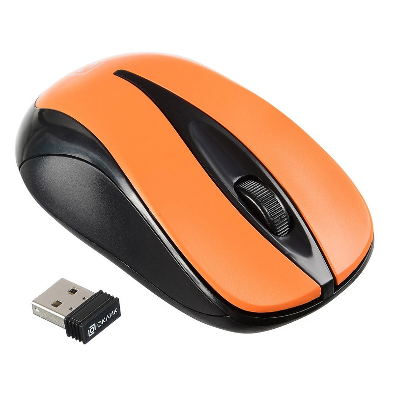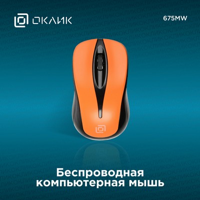 Беспроводная (2.4 GHz) компьютерная мышь от бренда Оклик. Модель 675MW, цвет черно-оранжевый.