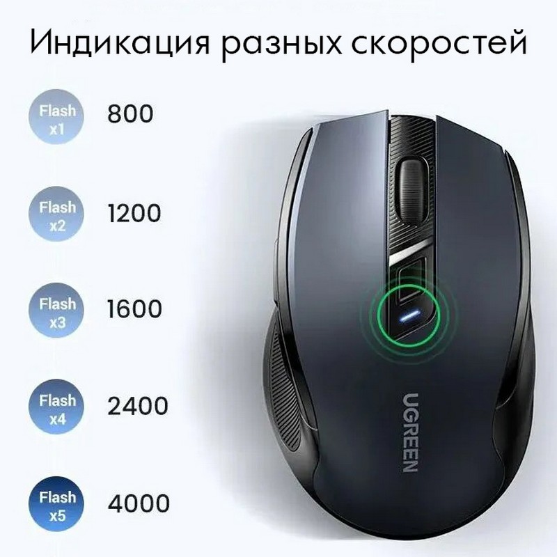 Мышь беспроводная, оптический сенсор, цвет:черный. Бренд Ugreen (входит в корпорацию Xiaomi)