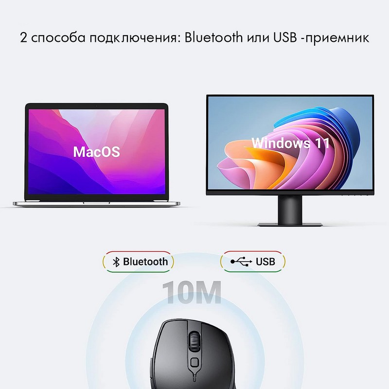Мышь беспроводная, 2 способа подключения, цвет:черный. Бренд Ugreen (входит в корпорацию Xiaomi)