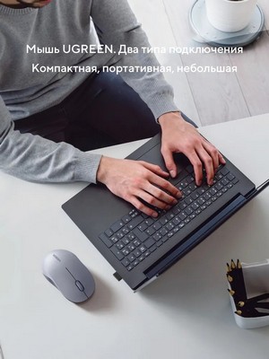 Мышь беспроводная, 2 способа подключения, цвет: серый. Бренд Ugreen