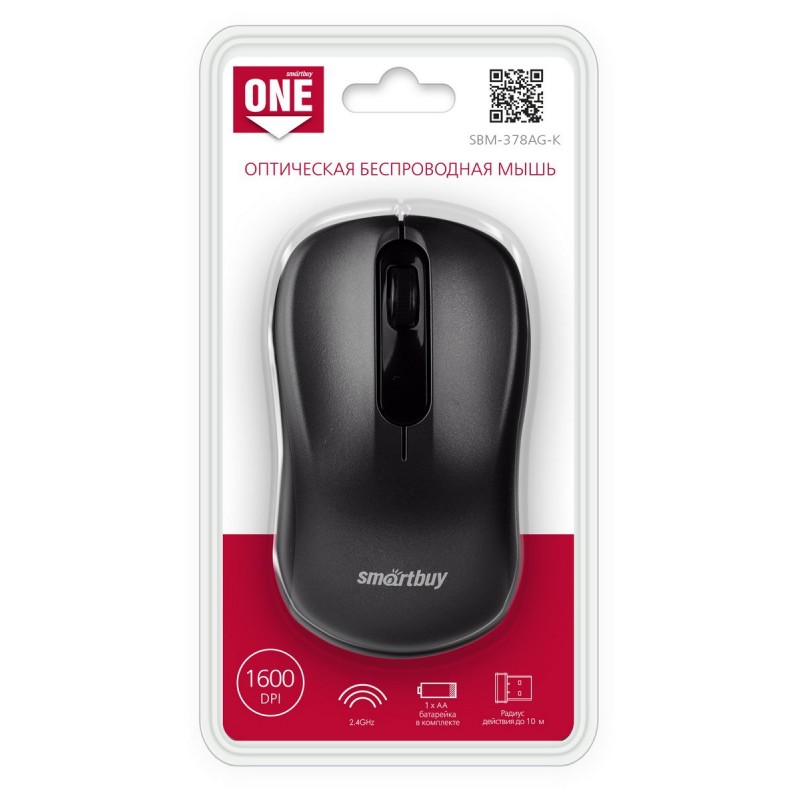 SmartBuy ONE 378 - эргономичная беспроводная оптическая мышь. Модель выполнена в симметричном дизайне и подходит для управления любой рукой. Чувствительный оптический сенсор с разрешением 1600 dpi обеспечивает точное позиционирование курсора и работает практически на любых поверхностях. Беспроводная частота 2.4 ГГц гарантирует стабильную передачу сигнала на расстоянии до 10 метров. Мышь работает от одной батарейки размера AA. Предусмотренная система энергосбережения автоматически отключит мышь, когда она не используется. Миниатюрный USB-приемник можно хранить в специальном отсеке в корпусе мыши или оставлять подключенным к компьютеру.