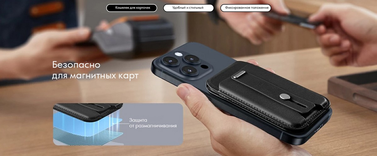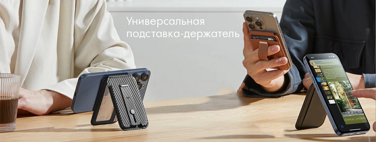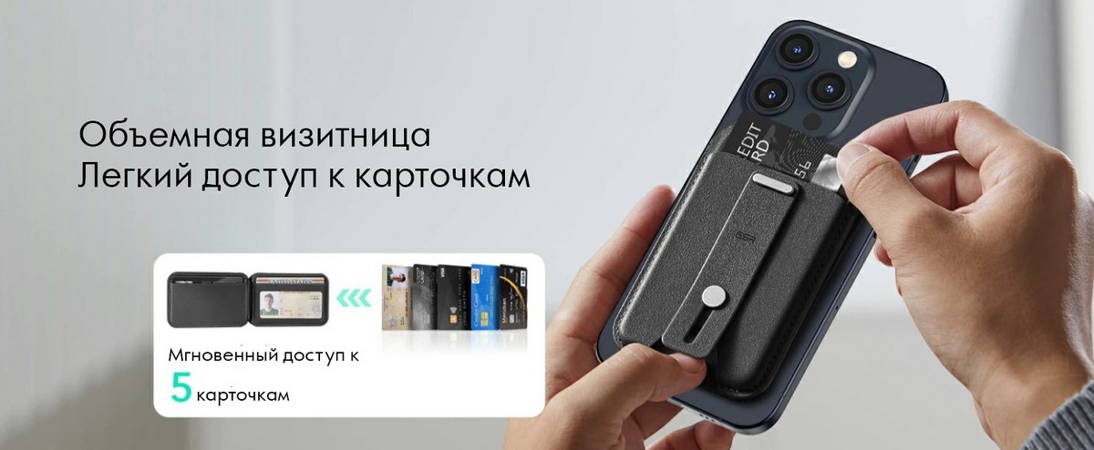 Нетеряемый (с маячком) картхолдер, визитница, кошелек, подставка для телефона, держатель на палец. Все это многофункциональный MagSafe кошелек с функцией Apple FindMy ESR HaloLock Geo Wallet Stand