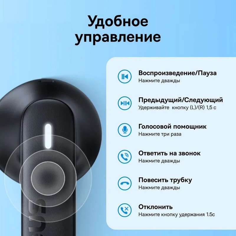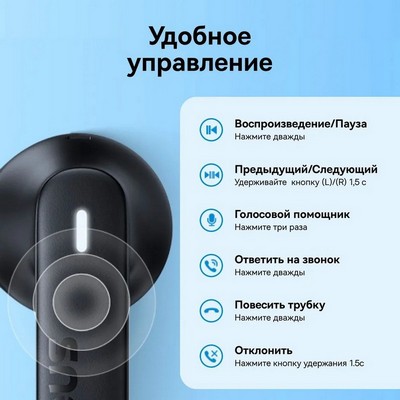 Сенсорная панель позволяет с легкостью управлять прослушиванием музыки, вызвать голосового помощника и отвечать на входящие звонки.