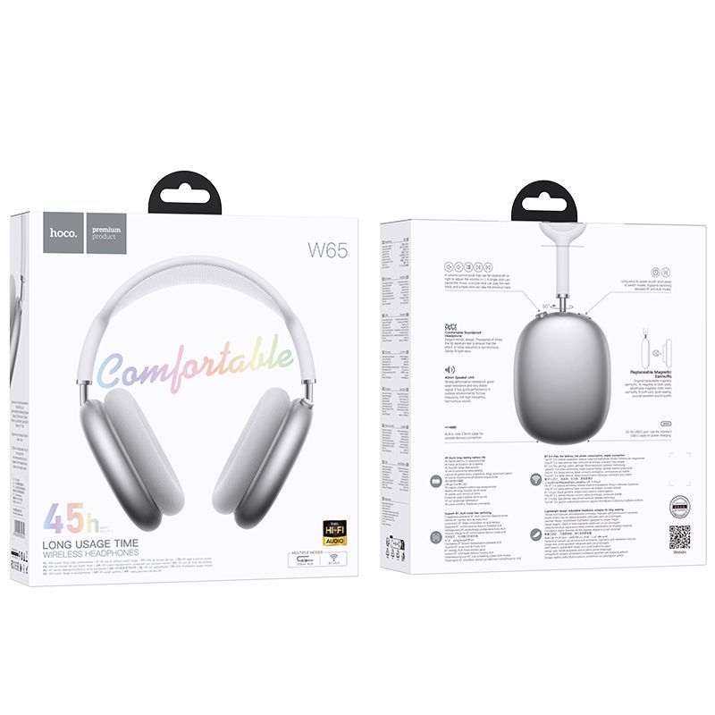 Беспроводные Bluetooth наушники Hoco W65 полноразмерные цвет: серебро.