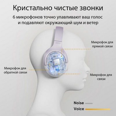 - Адаптивный двойной режим: активное шумоподавление и улучшение звука