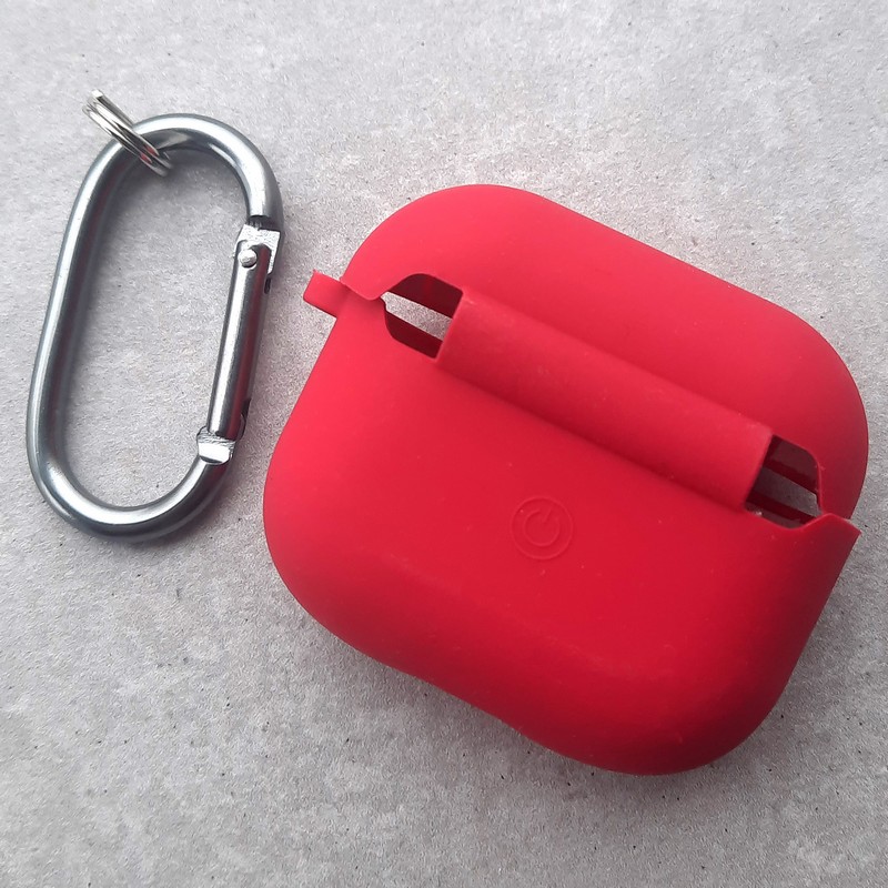 Чехол для AirPods 3, силиконовый с карабином, темно-красный