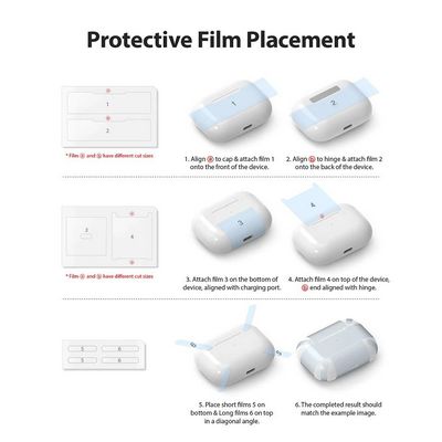 Перед установкой чехла, наклейте пленку на ваши ЭирПодс, как указано на рисунке. Это дополнительно защитит корпус наушников от микроцарапин.