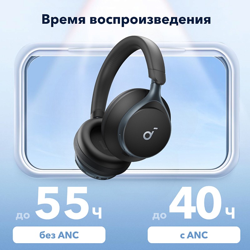 - Долгое время работы: Наушники работают до 40 часов с включенным шумоподавлением и до 55 часов без него.