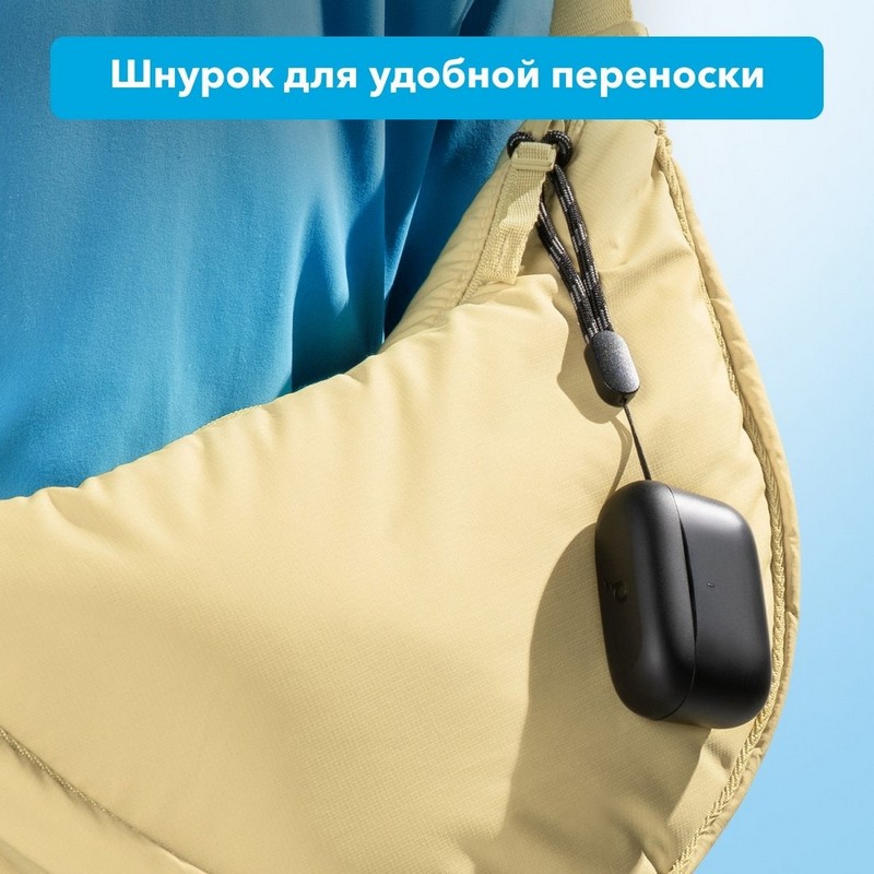 - ✅ Минималистичный дизайн: миниатюрные и легкие наушники в компактном кейсе, который легко помещается в карман. Кейс с наушниками весит всего 41 грамм. В комплекте предусмотрен шнурок для крепления к сумке или поясу.