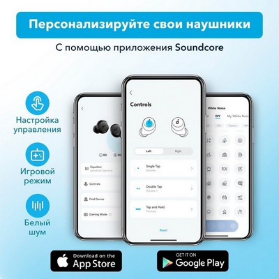 - ✅ Гибкие настройки: скачайте приложение soundcore, в котором доступны 22 режима эквалайзера и настройки сенсорного управления наушниками.