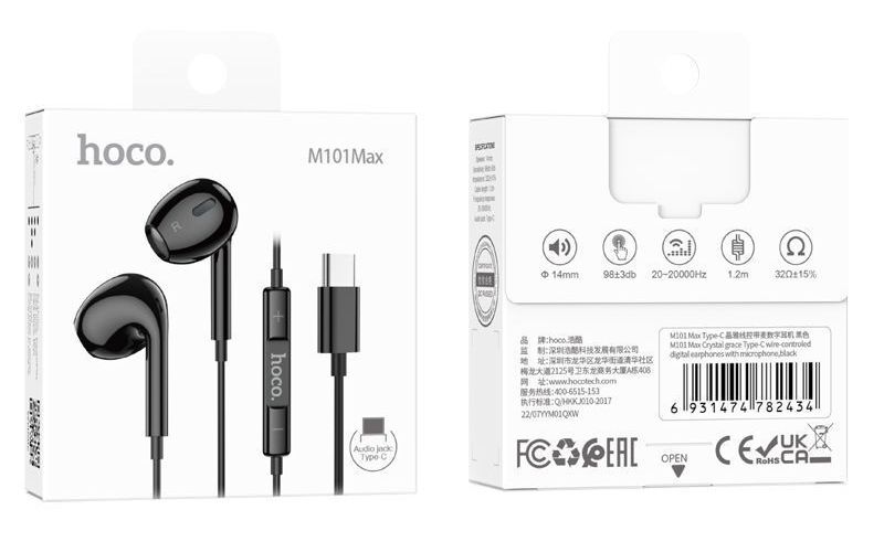 Наушники Hoco M101 Max с микрофоном, штекер Type-C цвет: черный