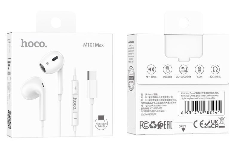 Наушники Hoco M101 Max с микрофоном, штекер Type-C цвет: белый