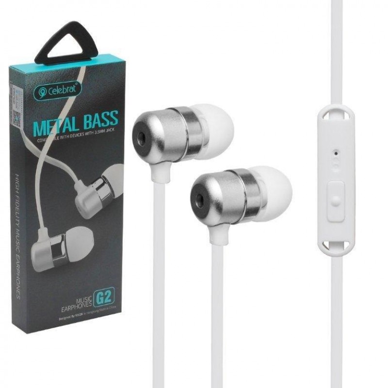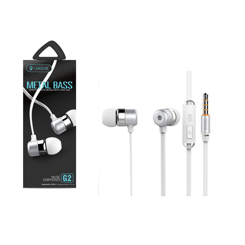 Вакуумные наушники Celebrat G2 - отличный выбор для ежедневного использования. Наушники обладают современным эргономичным дизайном. Модель имеет встроенный микрофон и представлена с разъемом 3,5 мм, совместимым с любым современным телефоном. Плоский кабель препятствует запутыванию и продлевает срок своей эксплуатации.У нас можно по доступной цене купить любой вид наушников: проводные, стереофонические, внутриканальные, беспроводные, вставные, накладные, полноразмерные, монофонические и динамические наушники.