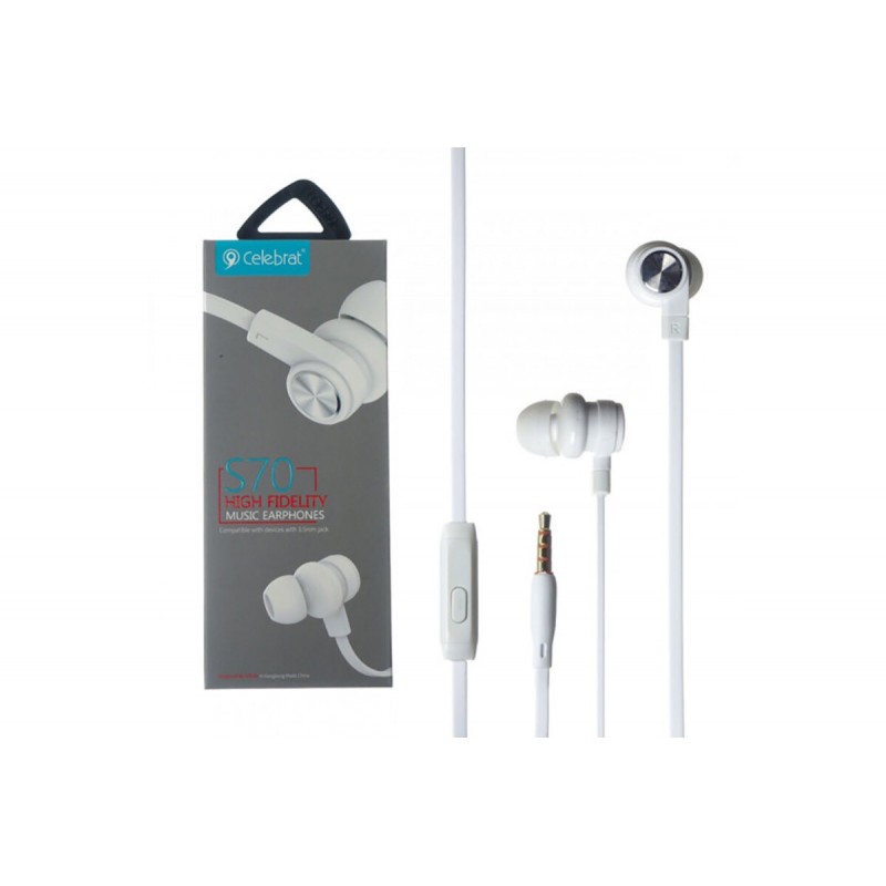 Вакуумные наушники Celebrat S70 - неотъемлемый атрибут любителей активного образа жизни, меломанов, которых всегда сопровождает музыка. Устройство выделяется потрясающим качеством звука. Устройство оснащено микрофоном и многофункциональной кнопкой, отвечающей за прием вызова и переключение музыки. Корпусные элементы наушников имеют вставки из металла. Наушники имеют эргономичную посадку и подарят своему владельцу незабываемые ощущения от прослушивания любимой музыки. Модель имеет стандартный разъем mini-jack 3,5 мм. Плоская форма кабеля препятствует спутыванию и минимизирует контактные шумы. В комплекте набор сменных силиконовых амбушюр.