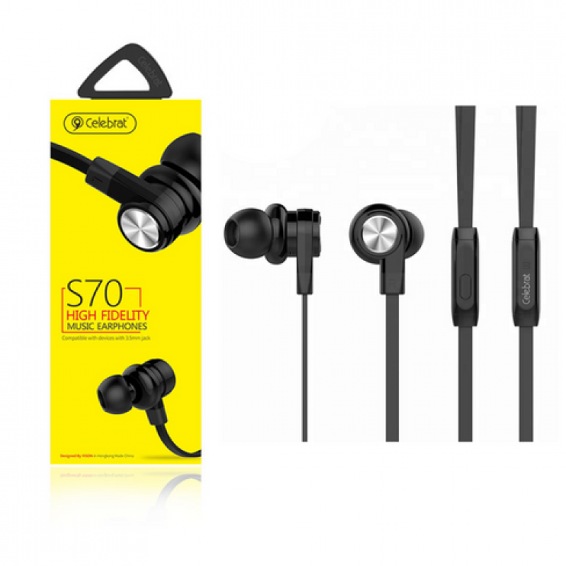 Вакуумные наушники Celebrat S70 - неотъемлемый атрибут любителей активного образа жизни, меломанов, которых всегда сопровождает музыка. Устройство выделяется потрясающим качеством звука. Устройство оснащено микрофоном и многофункциональной кнопкой, отвечающей за прием вызова и переключение музыки. Корпусные элементы наушников имеют вставки из металла. Наушники имеют эргономичную посадку и подарят своему владельцу незабываемые ощущения от прослушивания любимой музыки. Модель имеет стандартный разъем mini-jack 3,5 мм. Плоская форма кабеля препятствует спутыванию и минимизирует контактные шумы. В комплекте набор сменных силиконовых амбушюр.