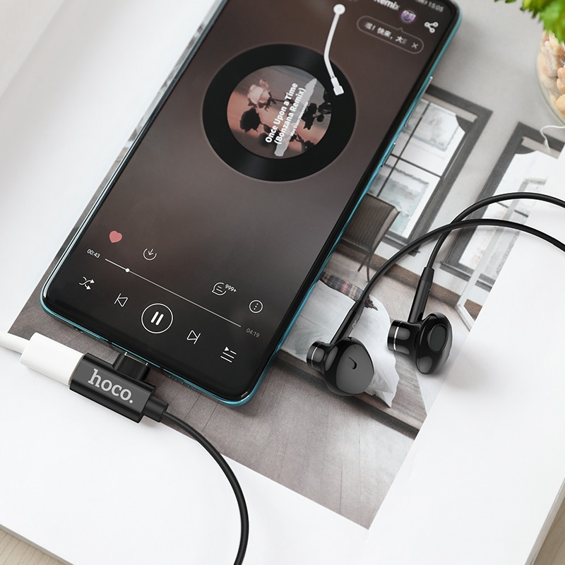 Hoco L12 Earl проводные наушники с микрофоном, 1.2м, Type-C коннектор, управление с помощью одной кнопки, с дополнительным зарядным портом Type-C