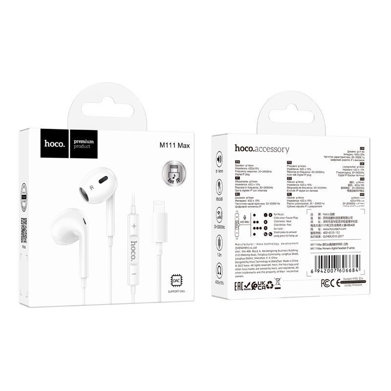 Наушники разъем Lightning для iP Hoco M111 Max белые