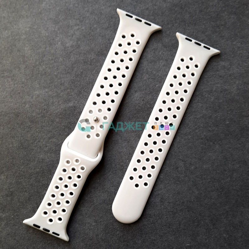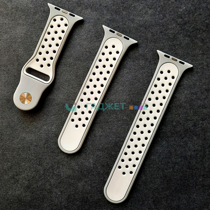 Сменный силиконовый ремешок для часов Apple Watch 42 / 44 mm Evolution Sport Plus AW44-SP01 gold silver / white.