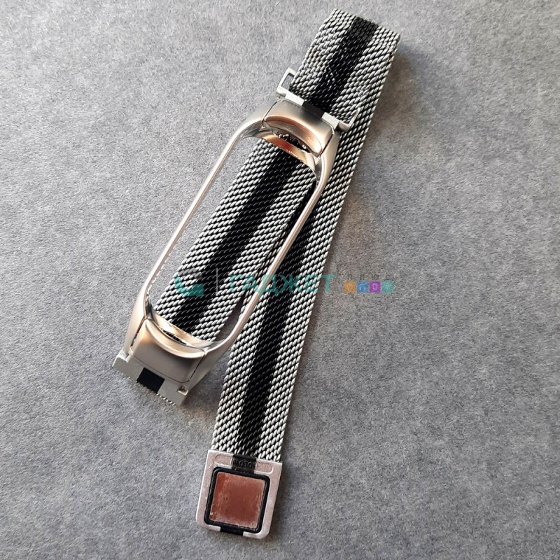 Сменный браслет из нержавеющей стали для Xiaomi Mi Band 4 миланская петля серебро с черной полосой.