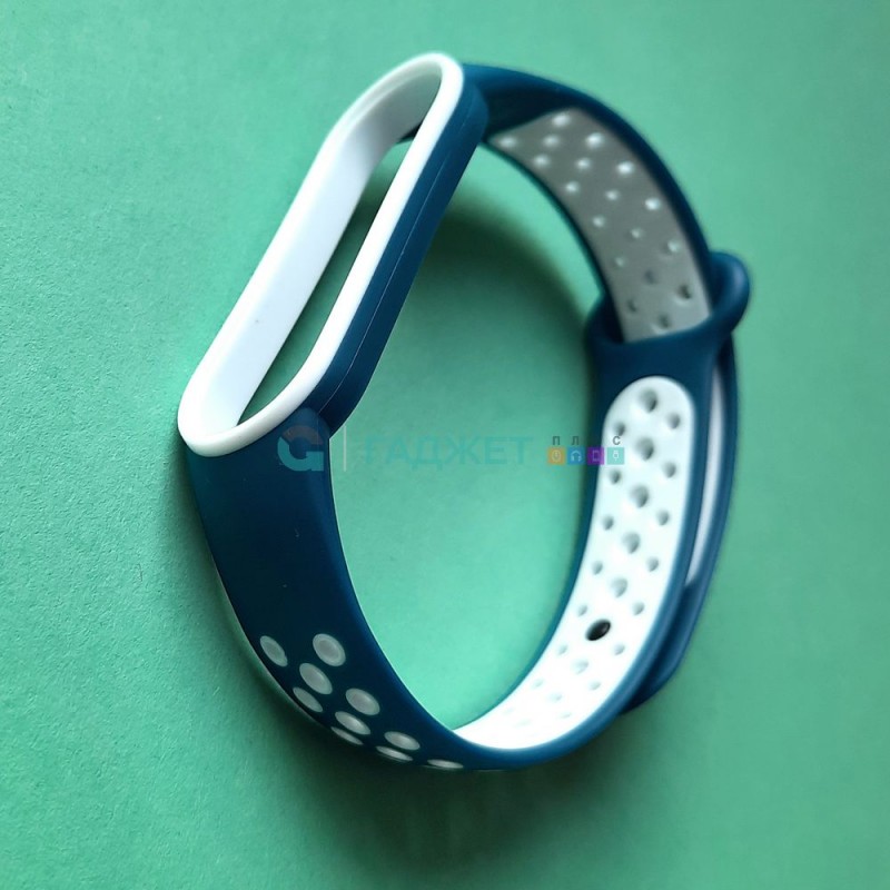 Предлагаем вашему вниманию cменный браслет Xiaomi Mi Band 5 / 6 спорт, синий с белым.