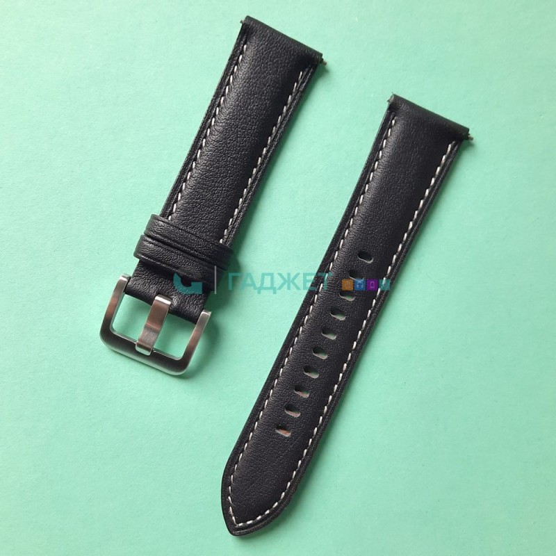Ремешок для часов, натуральная кожа, ширина 20мм, черный со строчкой