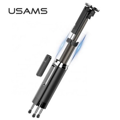 Но самое главное скрыто на нижнем торце трипода! В корпусе спрятаны три телескопических металлических ножки, благодаря которым держатель трипод для телефона USAMS US-ZB064 превращается в полноценный штатив! Больше никаких смазанных фото, просто крепите телефон в держатель монопода, выдвигаете ножки и устанавливаете в необходимую вам точку.