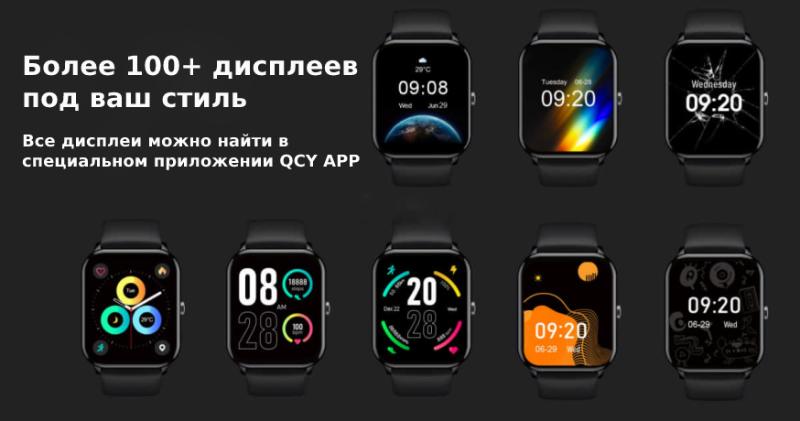 Умные часы QCY Watch GTC S1 – фитнес-часы с 1.85-дюймовым сверхбольшим сенсорным TFT-экраном высокой четкости и очень узкой рамкой. Более 100 различных стилей циферблатов, вы можете загрузить фотографии, чтобы настроить циферблат. Дистанционное управление: управление камерой смартфона, управление плеером смартфона,телефонные звонки: уведомление/управление входящими звонками. Степень пыле- и влагозащиты IPX8.