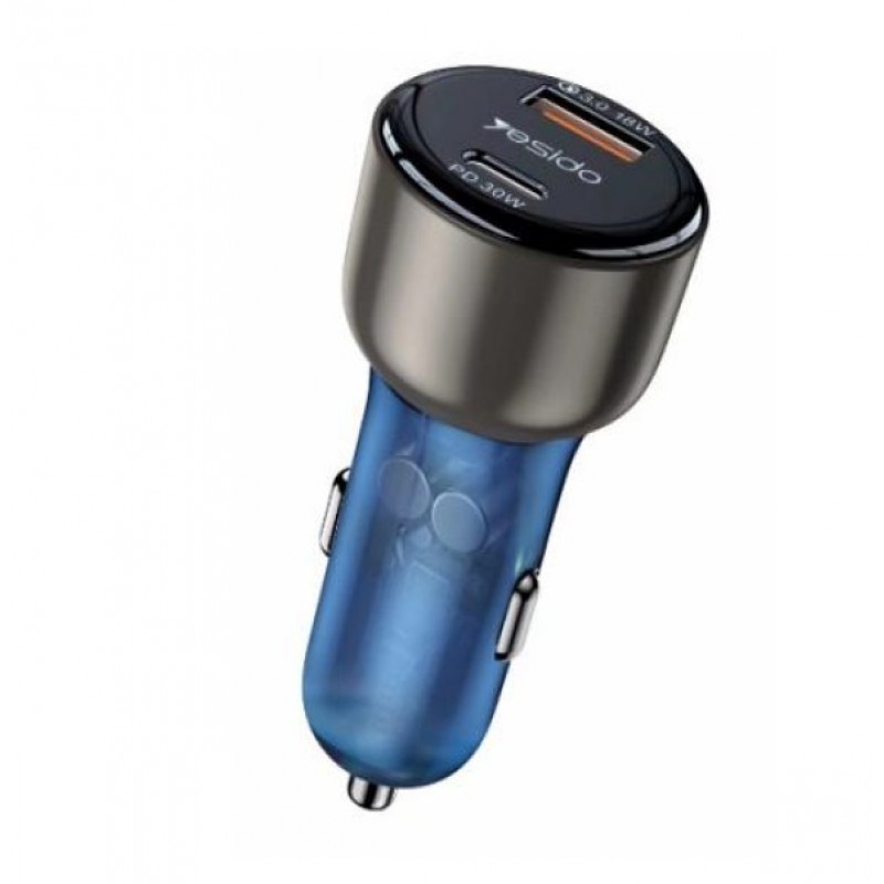 Зарядное устройство для смартфона в автомобиль с поддержкой технологий быстрой зарядки PD и Quick Charge в прозрачном корпусе