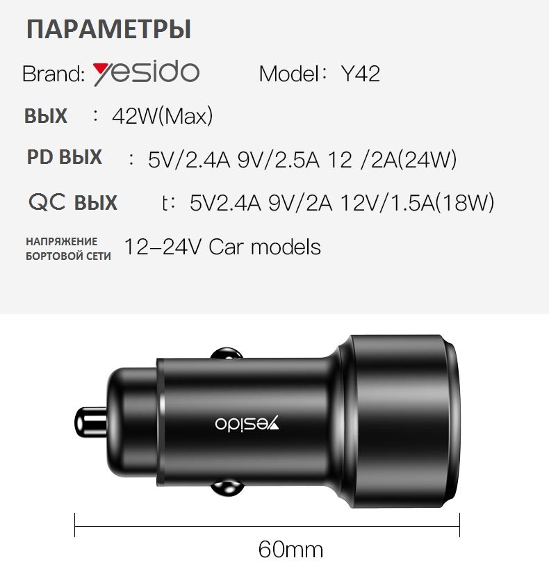 Предназначено для зарядки смартфонов через бортовую сеть автомобиля 12/24v