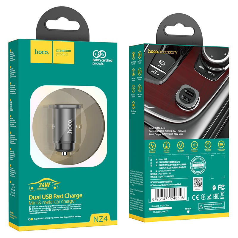 NZ4 Wise road, автомобильное зарядное устройство, два выхода USB 5V / 2.4A, общий выход 5V/4.8A (24W)