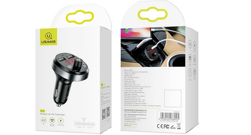 Автомобильное зарядное устройство + Bluetooth FM модулятор Usams c11 с поддержкой MP3