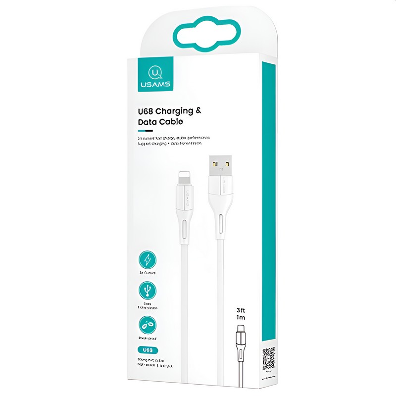 Дата-кабель USB - Lightning Usams US-SJ500 U68, 2A, 1м, белый