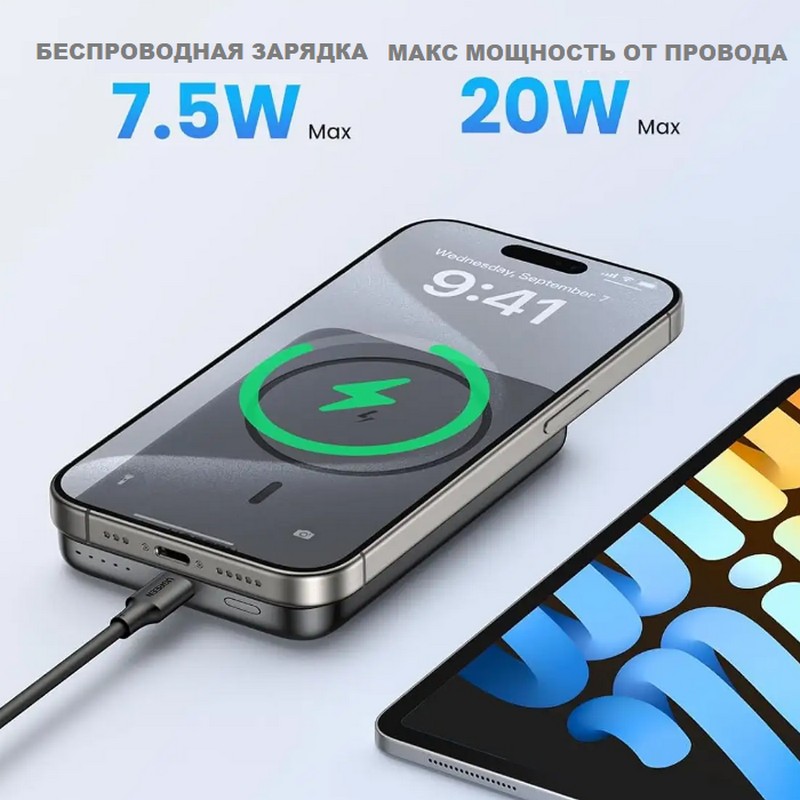 Беспроводное зарядное устройство Power Bank Ugreen — это элегантное и стильное беспроводное зарядное устройство, которое идеально подходит для всех, кто хочет быстро и удобно заряжать свой телефон. Повербанк оснащен быстрой беспроводной зарядкой для iPhone с MagSafe. Зарядное устройство также совместимо с множеством других устройств, поддерживающих беспроводную зарядку Qi.