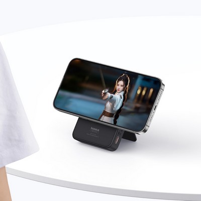 Power bank Baseus MagPro Magnetic Bracket Wireless Fast Charge 5000mAh 20W 2.4A QC3.0+PD3.0 с Беспроводной зарядкой Qi 15W - это компактный пауэрбанк емкостью 5000 мАч и мощностью 20 Вт с функцией складной подставки для смартфона. Повербанк Baseus оснащен входным/выходным портом USB-C. Интеллектуальная схема автоматически подстраивает параметры тока под заряжаемое устройство. Гарантирует совместимость с широким спектром устройств.