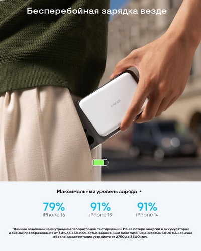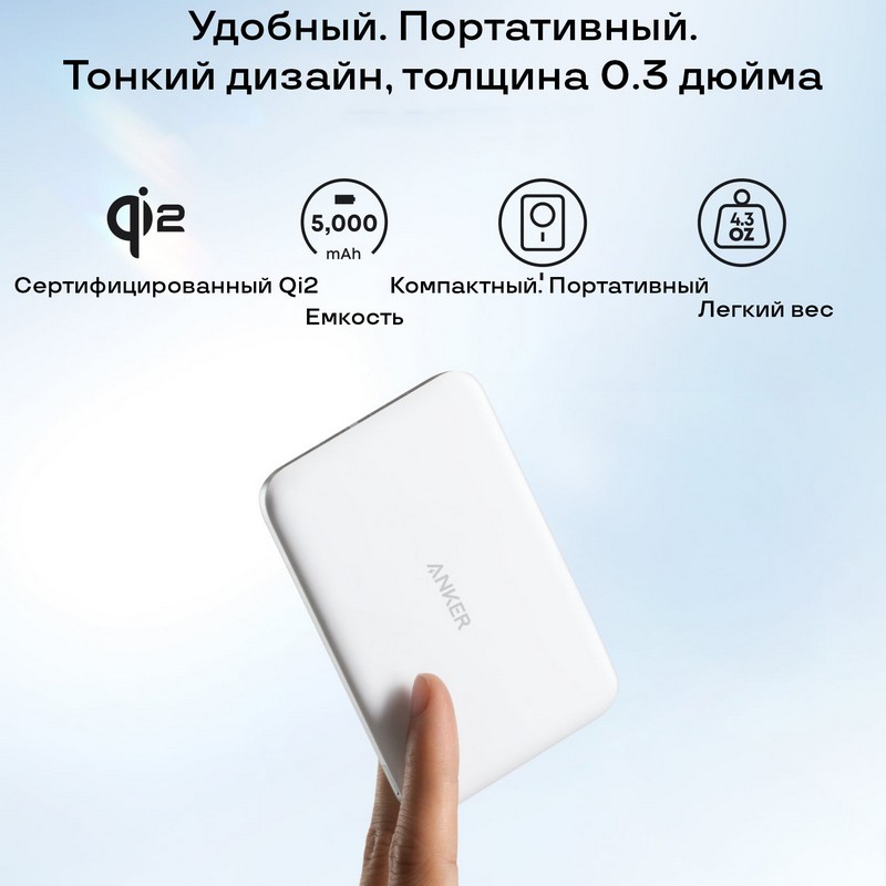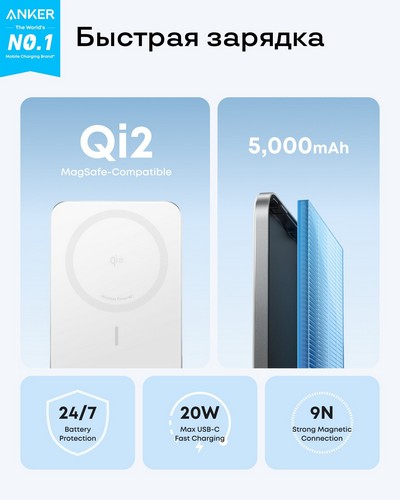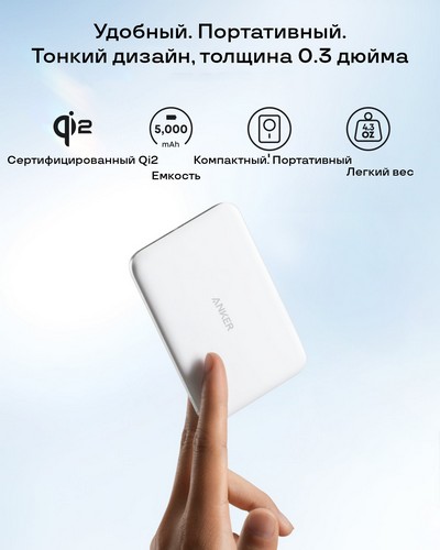 Внешний аккумулятор (Power Bank) с поддержкой беспроводной зарядки Magsafe Qi2 и быстрой зарядкой Anker Nano Air2 5000 mAh