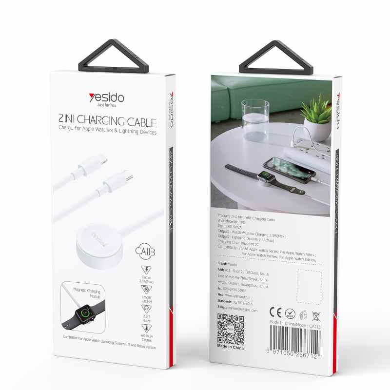 Магнитная беспроводная зарядка Yesido CA113 для смарт часов Apple Watch 2в1 USB-C / Type-C