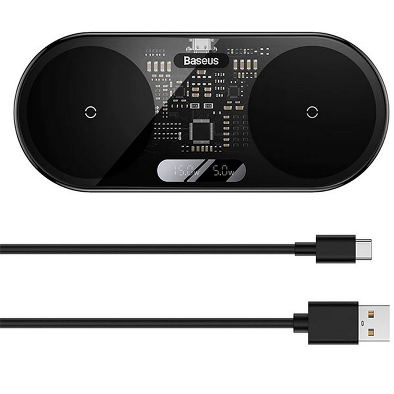 Беспроводная зарядка Baseus Digital LED Display 2in1 Wireless Charger Universal version 20W