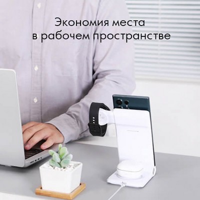 Док станция, беспроводная зарядка, зарядка для телефона, наушников и часов. Устройство 3 в 1. Версия для часов Huawei (телефон и наушники - универсальная)