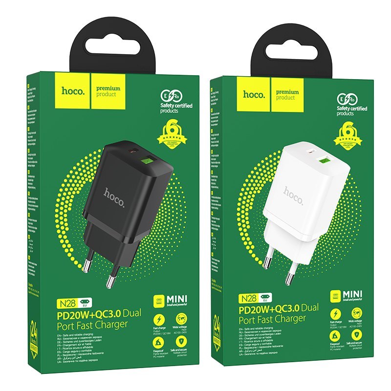 Зарядное устройство USB QC + PD 20W, Hoco N28 белый