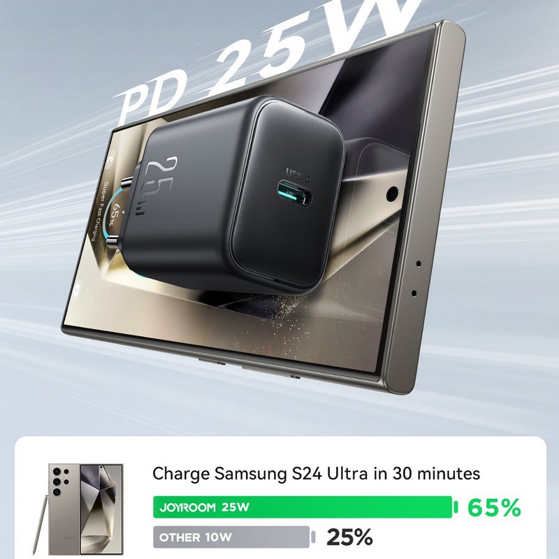 Сверхбыстрая зарядка 25 Вт (макс.): оптимизировано для устройств Samsung Galaxy.