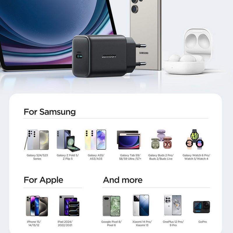 Поддержка протоколов PPS и PD: обеспечивает широкую совместимость с телефонами Samsung и другими устройствами PD.