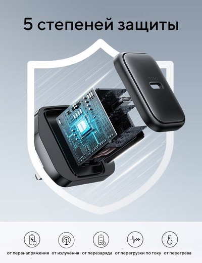 В 5 раз более быстрая зарядка: заряжает Samsung Galaxy и iPhone до 5 раз быстрее стандартных зарядных устройств мощностью 5 Вт.