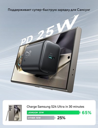 Сетевое зарядное устройство Joyroom JR-TCF23 25W PD Charger, набор с кабелем Type-C - Type-C, черный