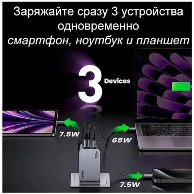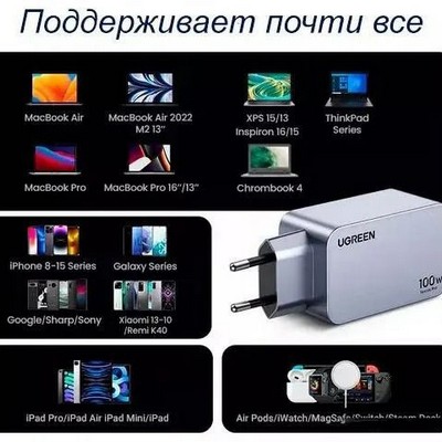 Зарядное устройство мощностью 100 Вт предлагает широкий спектр совместимости и передовых технологий для эффективной зарядки различных устройств.