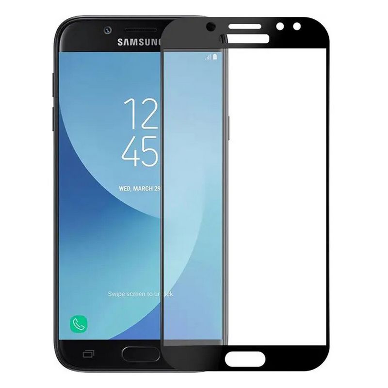 Защитное стекло для телефона Samsung J5 2017 / J530, полная проклейка, премиум качество, цвет черный